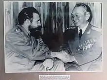 The contributions to North Vietnam by the Republic of Cuba under Fidel Castro have been recognized several times by representatives of the Democratic Republic of Vietnam.[17] Castro mentioned in his discourses the Batallón Girón (Giron Battalion) as comprising the Cuban contingent that served as military advisors during the war.[18][19] In this battalion, the Cubans were aided by Nguyễn Thị Định, founding member of the Viet Cong, who later became the first female major general in the PAVN.[20]