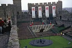 The investiture of Charles, Prince of Wales (later King Charles III) took place in Caernarfon Castle, north Wales, on 1 July 1969. The ceremony formally presented the title of Prince of Wales to the 20-year-old Charles, eldest son of Queen Elizabeth II. He was the 21st heir to the English or British throne to hold the title. The investiture was a revival of a ceremony which had first been used for the previous prince of Wales, Edward (Charles's great-uncle), in 1911. The 1969 event was watched by 500 million people worldwide on television,[1] but it received opposition in particular from Welsh nationalist organisations.