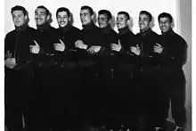 The Iranian national boxing team, which consisted of boxers from Tehran Taj club and Tehran Jafari club, was coached by Petros Nazarbegian,[4][5] and the team members were: Ezaria Ilkhanoff (Persian: ایزاریا ایلخانوف) in the Flyweight division (bronze medal),[6] Karapet Kochar (Persian: کاراپت کوچار) in the Bantamweight division (fifth place), Sadegh Aliakbarzadeh (Persian: صادق علی اکبرزاده) in the Featherweight division (fifth place),[7] Hassan Pakandam (Persian: حسن پاک اندام) in the Lightweight division (fifth place),[8] Vazik Kazarian (Persian: وازیک قازاریان) in the Light-Welterweight division (silver medal),[9] Soren Pirjanian (Persian: سورن پیرجانیان) in the Welterweight division (silver medal),[10] Amir Yavari (captain) (Persian: امیر یاوری) in the Light-middleweight division (silver medal),[11] Leon Khachatourian (Persian: لئون خاچاطوریان) in the Middleweight division (bronze medal),[12] Akbar Khojini (Persian: اکبرخوجینی) in the Light heavyweight division (bronze medal), (no participant in the Heavyweight division).[13]