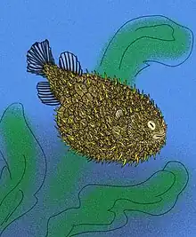 Iraniplectus bakhtiari is an extinct relative of modern-day pufferfish and porcupine fish from the Middle Oligocene of Iran. It is closely related to the Eocene Zignoichthys.