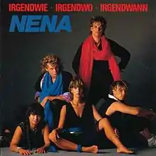 "Irgendwie, irgendwo, irgendwann" (German for "somehow, somewhere, sometime") is a 1984 song by Nena written by band members Jörn-Uwe Fahrenkrog-Petersen and Carlo Karges. It was a commercial success in Europe. Released initially as a single,[1] it was included on Nena's 1985 album Feuer und Flamme. Many variations and covers of the song have appeared, including samples and foreign language versions, most notably the English language "Anyplace, Anywhere, Anytime". Its various incarnations have charted over a 37-year period and in three different languages.