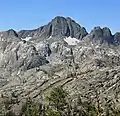 Iron Mountain is an 11,149-foot-elevation (3,398 meter) summit located in the Sierra Nevada mountain range in Madera County of northern California, United States.[5] It is situated in the Ansel Adams Wilderness, on the boundary shared by Inyo National Forest with Sierra National Forest. It is set at the south end of the Ritter Range, approximately 10 miles (16 km) west of the community of Mammoth Lakes. Devils Postpile National Monument is 4.5 miles to the east and the Minarets are three miles to the north. Precipitation runoff from the west side of this mountain drains to North Fork San Joaquin River, and from the east slope to the Middle Fork San Joaquin. Topographic relief is significant as the east aspect rises over 2,000 feet (610 meters) above Anona Lake in approximately one mile. There are climbing routes to the summit via the south slope and east face,[6] and inclusion on the Sierra Peaks Section peakbagging list generates climbing interest.