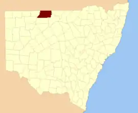 - ↑ "Irrara County". Geographical Names Register (GNR) of NSW. Geographical Names Board of New South Wales.
