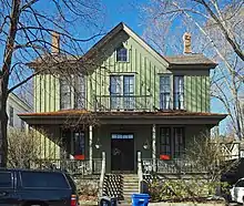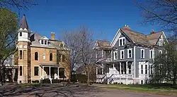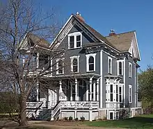 The Jay and Henry Knox House was built in 1860 by two brothers who were bankers. This is one of the few Carpenter Gothic houses in the Twin Cities. The vertical board and batten siding, a trademark of the style, was covered beneath stucco until its new owners began restoring the house in the 1970s.[2]