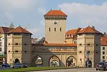 The Isartortheater, which produced Singspiele and spoken plays in the early 19th century, was destroyed in the Second World War.[1] After being heavily damaged by shelling, the medieval gate was rebuilt.