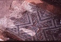 A Roman mosaic floor discovered under the ruins of St Catherine's Chapel and Almshouses. It is now on display at Exeter's Royal Albert Memorial Museum.