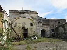 It has a five-bay portico, the most common type (along with the three-bay one) for Ottoman mosques in Greece.[10] The dome, when it still stood, was fourteen metres in diameter.[11] Both its interior and its exterior have undergone many alterations as a result of the mosque's various uses of the recent years, while its central dome has collapsed.[5] Of the minaret only the base survives; it stood at least as late as the 1930s as evidenced from old documents. Nothing survives of the old fountain and cemetery.[5]
