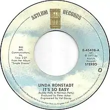Linda Ronstadt recorded "It's So Easy" in 1977 for her album Simple Dreams, produced by Peter Asher. Her recording was released as a single by Asylum Records in the autumn of that year. It hit the Billboard Top Five simultaneously with her recording of "Blue Bayou". It also reached No. 9 in Canada and No. 11 in the United Kingdom.[1][2] Ronstadt's version was used in the 2005 film Brokeback Mountain.