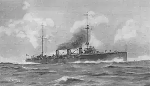 Quarto was a unique protected cruiser built by the Italian Regia Marina (Royal Navy) in the 1910s. Her keel was laid in November 1909, she was launched in August 1911, and was completed in March 1913. She was the first Italian cruiser to be equipped with steam turbines, which gave her a top speed of 28 knots (52 km/h; 32 mph). Her high speed was a requirement for the role in which she was designed to serve: a scout for the main Italian fleet.