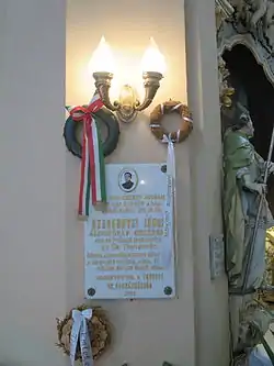 A plaque commemorating János Szerednyei is located inside the Catholic church in Tarcal, where he worked.