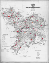 Ethnic map of the county with data of the 1910 census (see the key in the description).