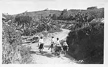 Many jíbaros were self-subsistence farmers, but there were also those who owned no land but instead worked as agricultural land tenants, sharecroppers, and fieldworkers of various types.[30] Some of those that did own their own plot of land were also farmer-salesmen who would grow enough crops to sell in the towns near their farms. Their crops would consist of whatever the land would grow, including bananas, plantains, avocados, ñames, yautías, batatas, yucas, malangas, and apio. However, hens, eggs, and charcoal were also traded.[31]