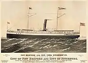 City of New Bedford | screw schooner | 1874 | Joseph B. Van Deusen | 1,085 | New Bedford & New York Steamship Co. | New Bedford, Massachusetts | Antonio Jacobsen ja1005 the city of New Bedford wm For service on Long Island Sound.[28] |