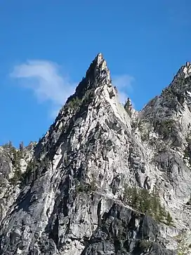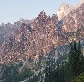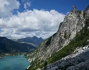 The Alpine Lakes Wilderness features some of the most rugged topography in the Cascade Range with craggy peaks and ridges, deep glacial valleys, and granite spires spotted with over 700 mountain lakes.[4] Geological events occurring many years ago created the diverse topography and drastic elevation changes over the Cascade Range leading to the various climate differences.