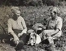 On leaving the Daily News in September 1930 Martin returned to the Herald as feature editor and photographer. She soon added picture editor to her responsibilities at the paper and, when owner William Randolph Hearst merged the offices of the Herald with those of the Times, she served in the same capacity for both papers. With this appointment Martin became the first woman to hold these management positions on a metropolitan newspaper. At that time she directed a staff of about a dozen men responsible for covering straight news, society, fashions, theaters, and sports in two or more pages of photos each day.[1]: 7, 14 [note 6] Martin's mentor and boss was the paper's domineering and mercurial editor, Cissy Patterson. One author says that in the 1930s Martin was often credited with "almost single-handedly transforming William Randolph Hearst's tired Herald into what was to become Cissy Patterson's sleek, eye-catching Times-Herald."[17] In 1936 Martin and Patterson visited a rural section of Tennessee and North Carolina to produce a series of six articles called "Dixie's Dead End."[18] One of the articles described the hardships faced by two elderly farm women at the height of the depression.[1]: 18 The image at left comes from this shoot.