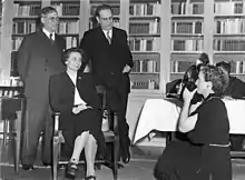 ![]() Jackie Martin taking a photo of the Swedish minister for foreign affairs Östen Undén and the Swedish prime minister Tage Erlander with his wife. | |