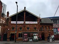 The hall was used as Cardiff's Juvenile Employment Bureau until 1967 and subsequently as a polling station, and office for employment benefit registrants. Demolition of the hall and its replacement by the re-siting of the Ebenezer Welsh Congregational Church in Charles Street was vetoed in 1975 by John Morris, the Secretary of State for Wales, and it was subsequently listed Grade II for its architectural merit, as was the Ebenezer Congregational Church.[4][5] A 99-year lease on the hall was sold to the Barry firm Hamard Catering Ltd. in October 1978, and it subsequently re-opened as Jackson's, a health club.[4] The hall was branch of Yates's Wine Lodge for several years until 2007, when it became the home of the Welsh Rugby Union gift shop.[6]