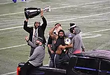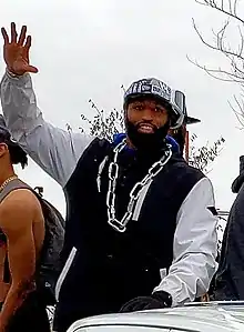 ![]() Jeffcoat at the Blue Bombers 2019 Grey Cup parade | |