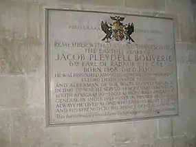 - ↑ "Bouverie or Pleydell-Bouverie, the Hon. Jacob (BVRY886J)". A Cambridge Alumni Database. University of Cambridge.