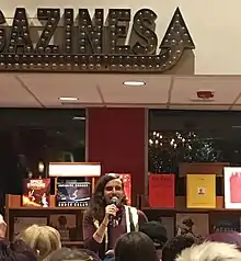In June 2017, Tobia announced the release of a memoir titled Sissy.[19] The book sold in a six-figure deal to Putnam Books.[2] Sissy was released in March 2019 and was a National Bestseller.[20] Tobia was featured as a guest on Trevor Noah's The Daily Show to promote the book. They discussed the term "gender chill," gendered violence, and the playful nature of non-binary genders.[21] Sissy was well-received by The New York Times Book Review, which compared Tobia to David Sedaris and Mindy Kaling.[22] They wrote, "[Tobia] combines incisive wit and undeniable intelligence to invite readers into their journey as a gender-nonconforming young person in North Carolina...If Tobia aspires to the ranks of comic memoirists like David Sedaris and Mindy Kaling, Sissy succeeds."