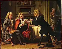 Bodin, Dufresny and Crébillon at the Maison d'Auteuil, painting from 1716 now in the Palace of Versailles.