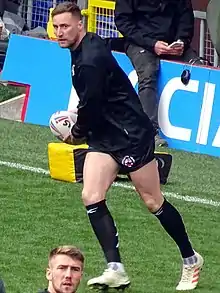Clare warming up for the Castleford Tigers at Anfield in 2019
