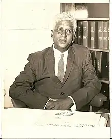 Madhavan initially was a primary school teacher but when the Maha Sangh sugar cane farmers' union was formed in Labasa, he was one of its earliest members. Unlike in Viti Levu where it was mainly supported by South Indians, the Maha Sangh in Labasa had support from a wide cross-section of the Indo-Fijian community. He became the leader of Maha Sangh in Vanua Levu and when the organisation split into two opposing factions, he registered a new association known as the Vanua Levu Farmers Union.[1] He also remained an active member of the Fiji Teachers Union and was its president in the 1950s and early 1960s, retiring from the position in 1967.[2]