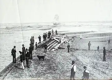 Zephyr crossing the bar at Hokitika, New Zealand, c. 1880