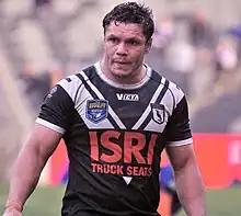 During the off-season, Roberts reportedly spent time in a Thailand rehabilitation facility to deal with alcohol and substance abuse. Apparently, he was at the same facility in 2016.[47] After showing good form in the early rounds, Roberts was selected in the New South Wales team for the 2018 State of Origin series.[48] On 6 June 2018, Roberts made his State of Origin debut in Game 1, in which NSW defeated Queensland 22-12 at Melbourne Cricket Ground.[49] Roberts played in all three matches at centre in the Blues 2-1 shield winning series.[50][51] Roberts finished the 2018 NRL season having played 22 matches and scoring 9 tries for the Broncos.