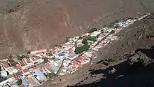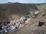 The city is built on igneous rock in the James Valley, sandwiched between steep cliffs. It is therefore rather long and thin. The walls of the valley are rough and steep, and rockfalls have been a problem, although now minimised by netting.[7] A small stream, the Run, runs through the valley.[8] The city is commonly divided into lower and upper parts, depending on the distance up James Valley. Being the island's main port (and with the Saint Helena Airport only receiving its first scheduled flight in October 2017) the city is still currently the main entrance to the island to visitors.[7] Despite not being connected to Jamestown proper by road, Rupert's Valley, the next valley north, is also part of the city. It houses much of the island's infrastructure, such as its power station and associated fuel storage, and a one-ship wharf was completed in June 2016.[9]