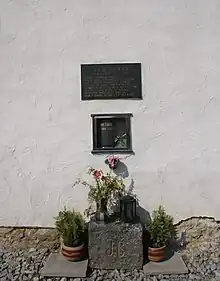 A funerary urn of Jan Čarek placed in the wall of his birthplace church in Heřmaň in South Bohemian Region.