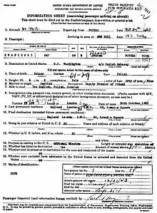 c ^ Particulars of the trip and of the diplomat's person may be seen in his New York landing paper, shown left. (9 November is German Schicksalstag.) For graphic suggestion of Poland's benefit from UNRRA relief see