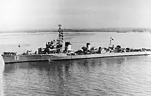 Yukikaze (雪風, "Snowy Wind") was a Kagerō-class destroyer in service with the Imperial Japanese Navy during World War II. She was the only member of her class to survive the war, and did so without suffering any major damage. She is famously known as a very fortunate ship, as she often survived numerous major naval encounters with little to no damage, while many of her allied ships would leave the battle crippled or sunk on multiple occasions. She did not accomplish anything of note in the battles of Java Sea, Midway, and Santa Cruz, but came to her own in various naval engagements in the Guadalcanal campaign, before seeing escorting missions during the Battle of the Philippine Sea, partaking in her last major surface engagement in the Battle of Leyte Gulf, and seeing her last major action of any sort escorting the battleship Yamato during the Battle of Okinawa. Following the war, the ship was transferred to the Republic of China Navy, where she was renamed Dan Yang (丹陽 DD-12) and served until 1966, before being scrapped in 1970.[1][2]