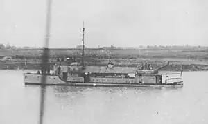 The gunboat participated in the Battle of Wuhan from June to September 1938 and in Battle of Madang and the Battle of Jiujiang in June 1938. From February to May 1939, Kotaka fought in the Nanchang Campaign. In 1942 Kotaka was in service as a passenger ship. The vessel was sunk on May 31, 1944, on the Yangtze River while serving as a communications ship.[7] The IJN official designation was 60-ton traffic ship (Motored river exclusive-Special type) (六拾瓲交通船 (内火式河用特型),, 60-ton kōtsūsen (Uchibishiki kawayou-Tokugata)).[1][4]