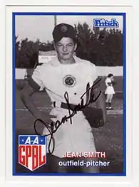 Jean Marie Smith (May 9, 1928 – March 13, 2011) was an outfielder and relief pitcher who played from 1948 through 1954 in the All-American Girls Professional Baseball League. Listed at 5 ft 6 in (1.68 m), 128. lb, she batted and threw right-handed.[1][2]
