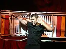 His show, Comedy in Action, was transplanted to The Quad (then called the Imperial Palace) on May 26, 2012.[34] Civillico initially continued to perform at Burton's magic show where his show was promoted.[30] After Burton, Comedy in Action's first producer, moved from Caesars Entertainment to Saxe Theater in Miracle Mile Shops in October 2012, Civillico began producing his own show.[35][36] When the show began, Civillico said, "You know you're a big deal in Vegas when you do your own introduction."[24] For the first six months, Comedy in Action was a one-man show; Civillico had no assistants or showgirls with him.[30] In December 2012,[37] Alonzo "Turf" Jones, a hip-hop dancing contortionist who competed on America's Got Talent's seventh season, became Civillico's opening act.[38][39] Jones and Civillico teamed up as opener and headliner following Jones' performance at a Win-Win Entertainment charity event Civillico hosted.[40]