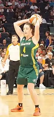 She played in France in 2008/2009 with Arras Pays d'Artois Basket Féminin in the Fédération Française de Basket-Ball,[19] and in the American Women's National Basketball Association (WNBA) for the Los Angeles Sparks in the 2011–2013 seasons,[20][21] before being traded to the Seattle Storm for the 2014 season.[22]