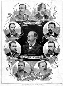 The Jennings ministry was the 23rd ministry of the Colony of New South Wales, and was led by the eleventh Premier, Sir Patrick Jennings, and the first Roman Catholic to hold the office of Colonial Premier.[1] Jennings was first elected to the New South Wales Legislative Assembly at the 1869–70 election, and then again in 1880.