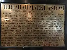 - ↑ "Jeremiah Markland (MRKT710J)". A Cambridge Alumni Database. University of Cambridge.