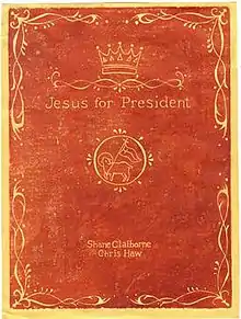 Claiborne and Haw promoted Jesus for President by going on a U.S. speaking tour of 30 cities.[15] The tour led up to the 2008 United States presidential election, and the book tour was suggestive of a third party candidate campaign for Jesus.[15] The authors' speeches did not attempt to sway their audiences towards or away from any particular candidates,[15] but rather encouraged them to endorse whichever candidates supported Christian values.[16]