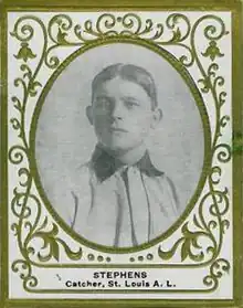 James Walter Stephens (December 10, 1883 – January 2, 1965) was a Major League Baseball catcher who played six seasons with the St. Louis Browns of the American League from 1907 to 1912. A weak hitter, he had a career .220 batting average, and hit three home runs in his career, all during the 1909 season.[1] Mostly a backup in his career, he was a starter in both the 1910 and 1912 seasons.[2]