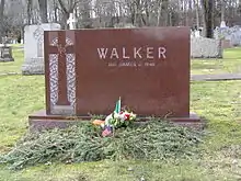 After his return to the United States, Walker acted as head of Majestic Records, which included such popular performing artists as Louis Prima and Bud Freeman.[2] In 1940 he had his own radio series on WHN, Jimmy Walker's Opportunity Hour, with Henry Gladstone serving as announcer.[15] He died at the age of 65 of a brain hemorrhage.[16] He was interred in the Gate of Heaven Cemetery in Hawthorne, New York.