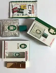Jintan (仁丹) is the trademarked name of a popular Japanese medicine/candy, developed by Morishita Hiroshi (1869–1943), and sold from the early twentieth century to today. Originally marketed as a cure-all for a number of ailments, Jintan is today thought of as a breath freshener and a candy.