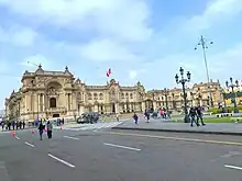 ![]() The street and the Government Palace, seen from the Jirón de la Unión | |