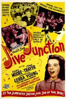 Jive Junction is a 1943 American comedy film directed by Edgar G. Ulmer and written by Irving Wallace, Walter Doniger and Malvin Wald. The film stars Dickie Moore, Tina Thayer, Gerra Young, John Michaels, Jack Wagner and Jan Wiley. The film was released on December 16, 1943, by Producers Releasing Corporation.[1][2][3]
