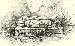 ![]() The tombs of Lord and Lady Morton as they appeared in 1902. Note the blank faces and missing hands | |