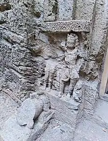 The Jogeshwari Caves are some of the earliest Hinduism cave temple sculptures located in the Mumbai suburb of Jogeshwari, India. The caves date back to the sixth century, Chalukya dynasty.[1] They were found during the excavation of Ajanta and Elephanta.[2] These caves belong to the Hindu deity Jogeshwari. According to historian and scholar Walter Spink, Jogeshwari is the earliest major cave temple in India and (in terms of total length) "the largest".[3]