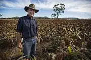 Anderson in a field of sorghum on his property in Newstead, NSW