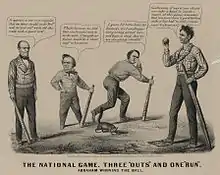 Initially an ally of Andrew Jackson, Bell turned against Jackson in the mid-1830s and aligned himself with the National Republican Party and then the Whig Party, a shift that earned him the nickname "The Great Apostate".[2][3] He consistently battled Jackson's allies, namely James K. Polk, over issues such as the national bank and the election spoils system. Following the death of Hugh Lawson White in 1840, Bell became the acknowledged leader of Tennessee's Whigs.[1]