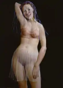 John Currin (born 1962) is an American painter based in New York City. He is most recognised for his technically proficient satirical figurative paintings that explore controversial sexual and societal topics.[1] His work shows a wide range of influences, including sources as diverse as the Renaissance, popular culture magazines, and contemporary fashion models.[2] He often distorts or exaggerates the erotic forms of the female body,[3] and has stressed that his characters are reflections of himself rather than inspired by real people.[4]